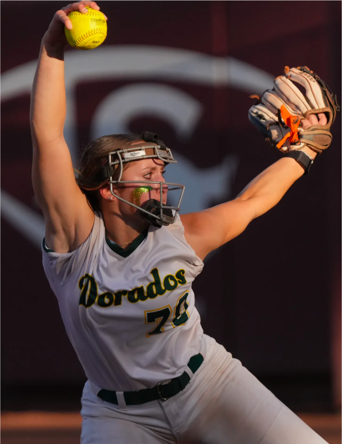She led Del Oro High to the 5A state title game and was named the Arizona 5A Conference Player of the Year and finished her esteemed prep career earning her fourth 1st Team All-Region honors and being named the Southern Arizona Pitcher of the Year for the second time.