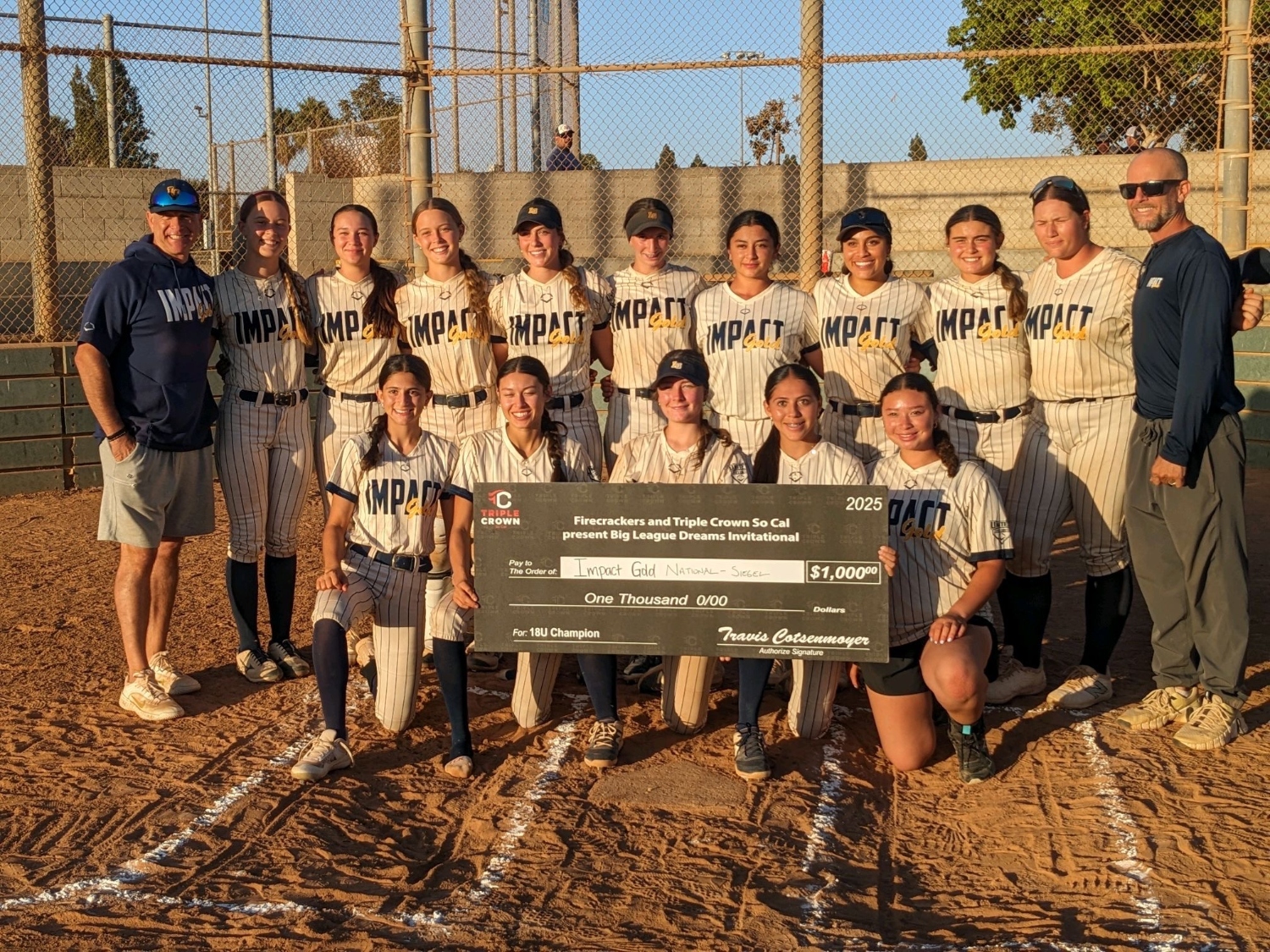 Impact Gold National-Siegel was the 18U co-champion o the 2025 Triple Crown/Firecrackers Big League Dreams Invitational. Photo provided by Justin Siegel.