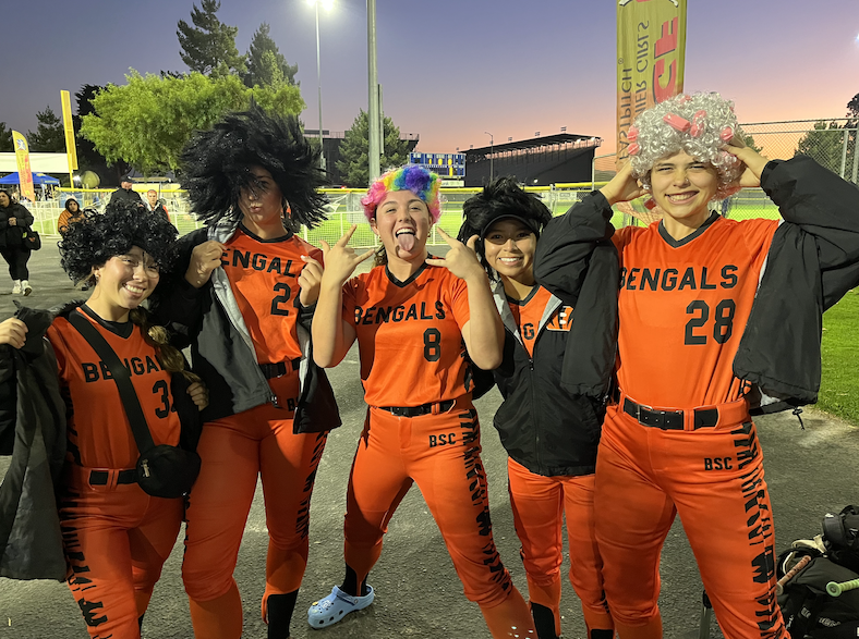 Players and family members of LTG (Love The Game) pose Friday night in uniform and in costume!