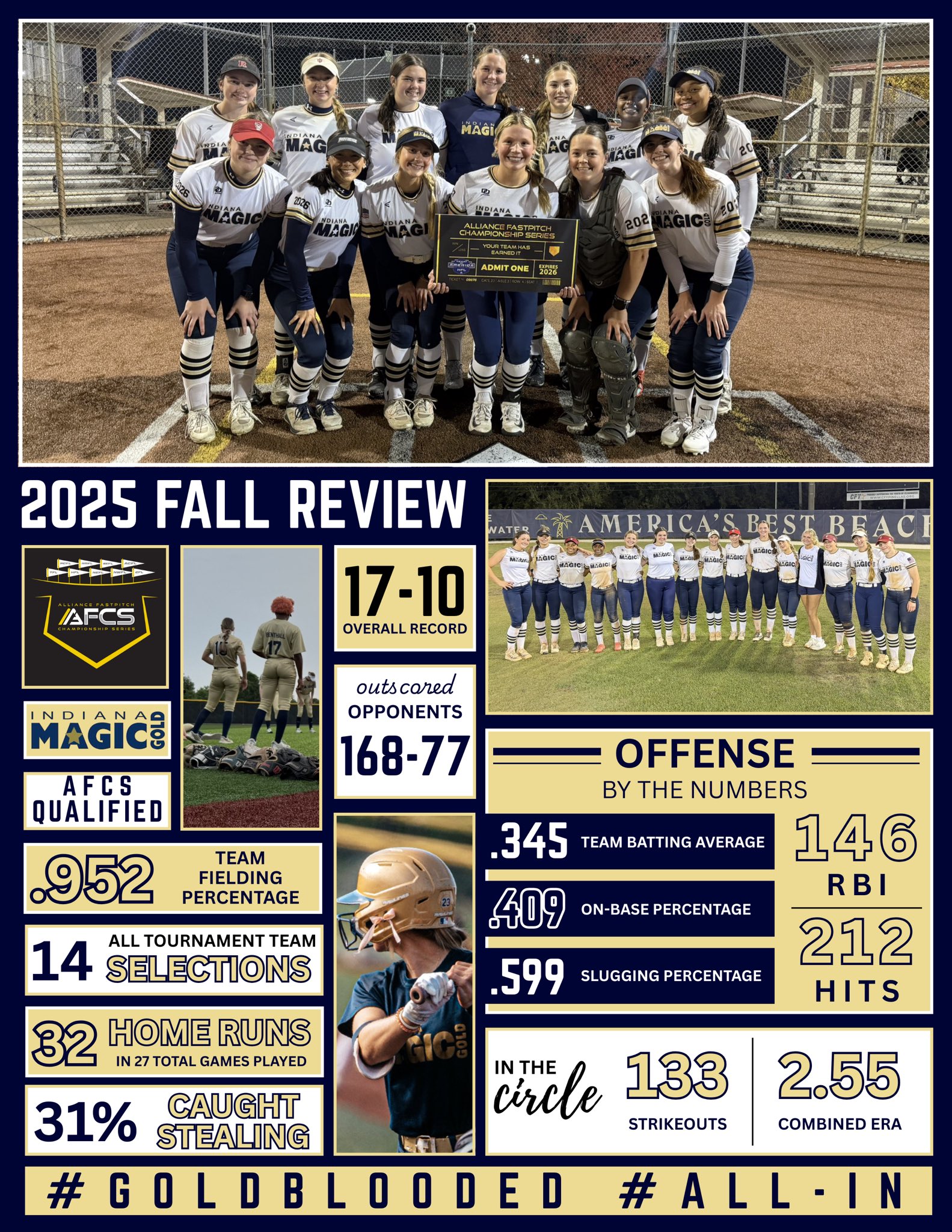Along her softball journey, Ellie has compiled some impressive totals over her tenure, starting with the CDC All Stars, Carmel Pups, two seasons with the Indiana Mustangs and the last seven years with Magic Gold.