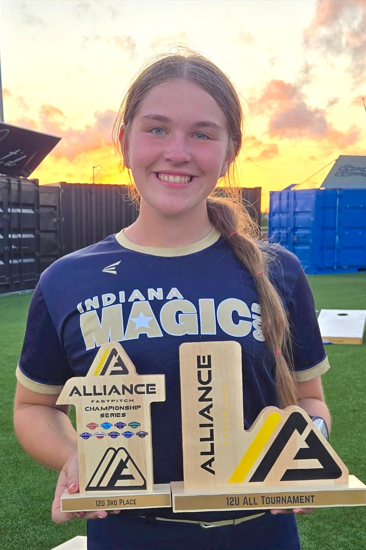 As for team accomplishments, I’ve been fortunate to win 13 PGF Super Select glass trophies, including eight championships and five runner-up finishes. These came as a member of Indiana Magic Gold 2030 Fritsche/Rogers and Beverly Bandits 2012.
