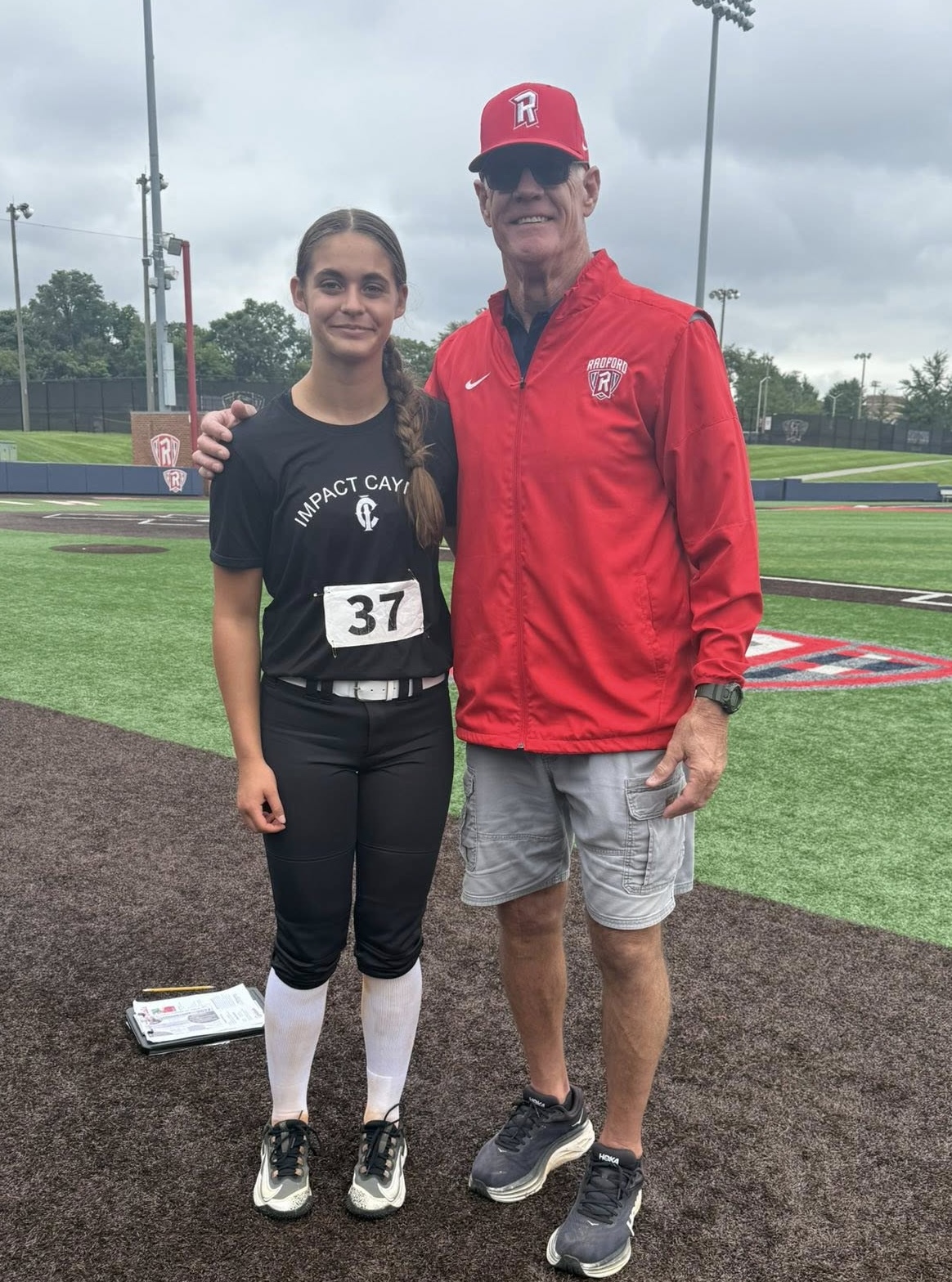 Sophie at a Radford University (Va.) softball camp with Head Coach Kevin Fagan.