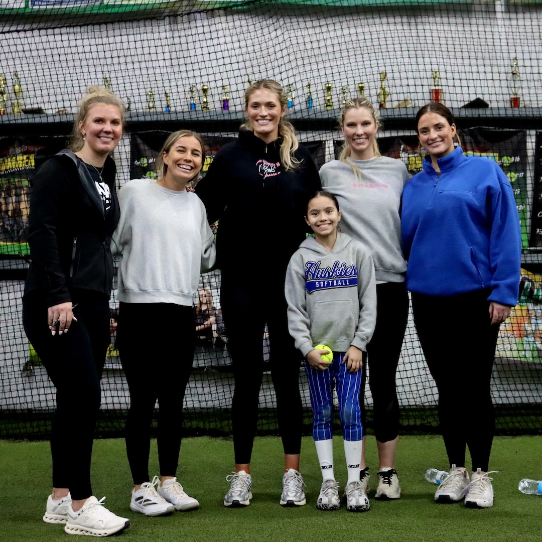 A young Alana (holding the ball) with many notable stars of the game… left to right: Bailey Dowling, Sis Bates, Montana Fouts, Ally Shipman and Bri Ellis.