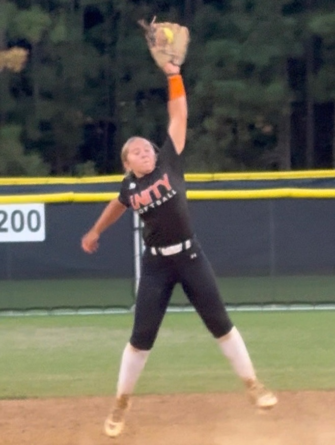 Daniella Neve, a top 2030, makes a play on the infield for her Unity 16U team. She's already being followed by major D1 programs.