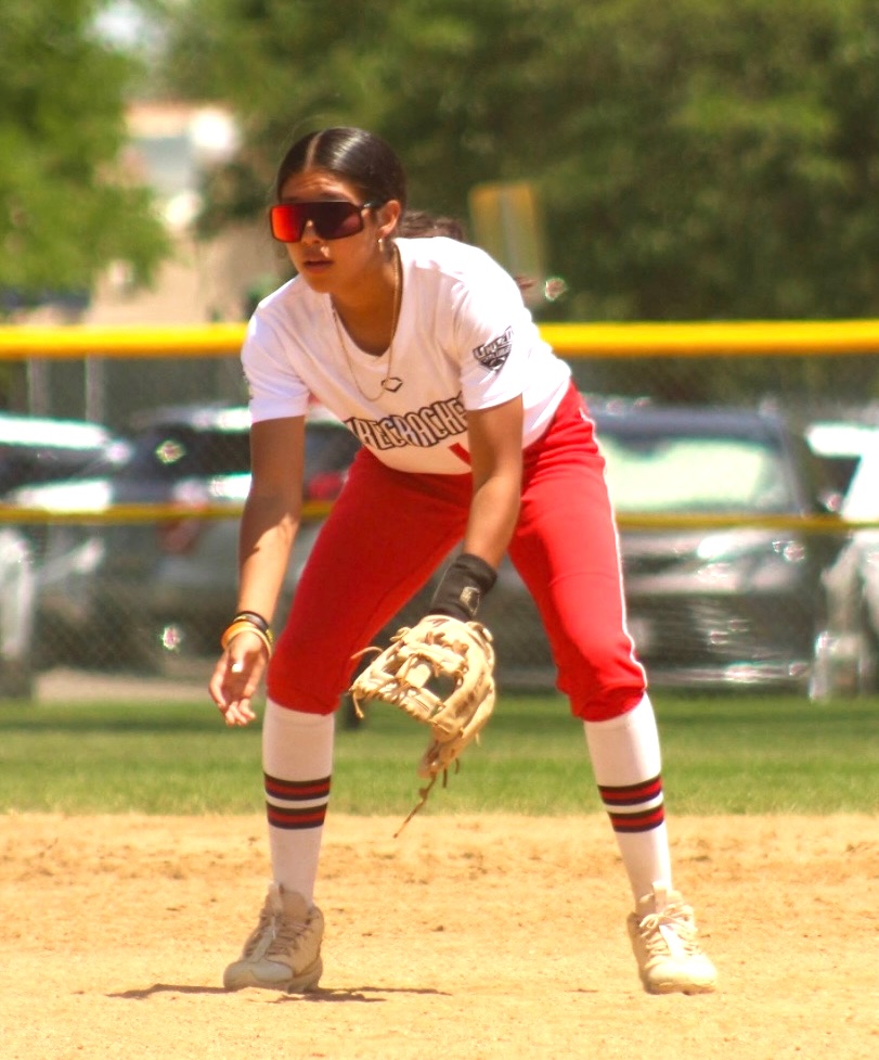 Haley Maldonado makeing a play in the infield for her Firecrackers Select RTY 2028 team