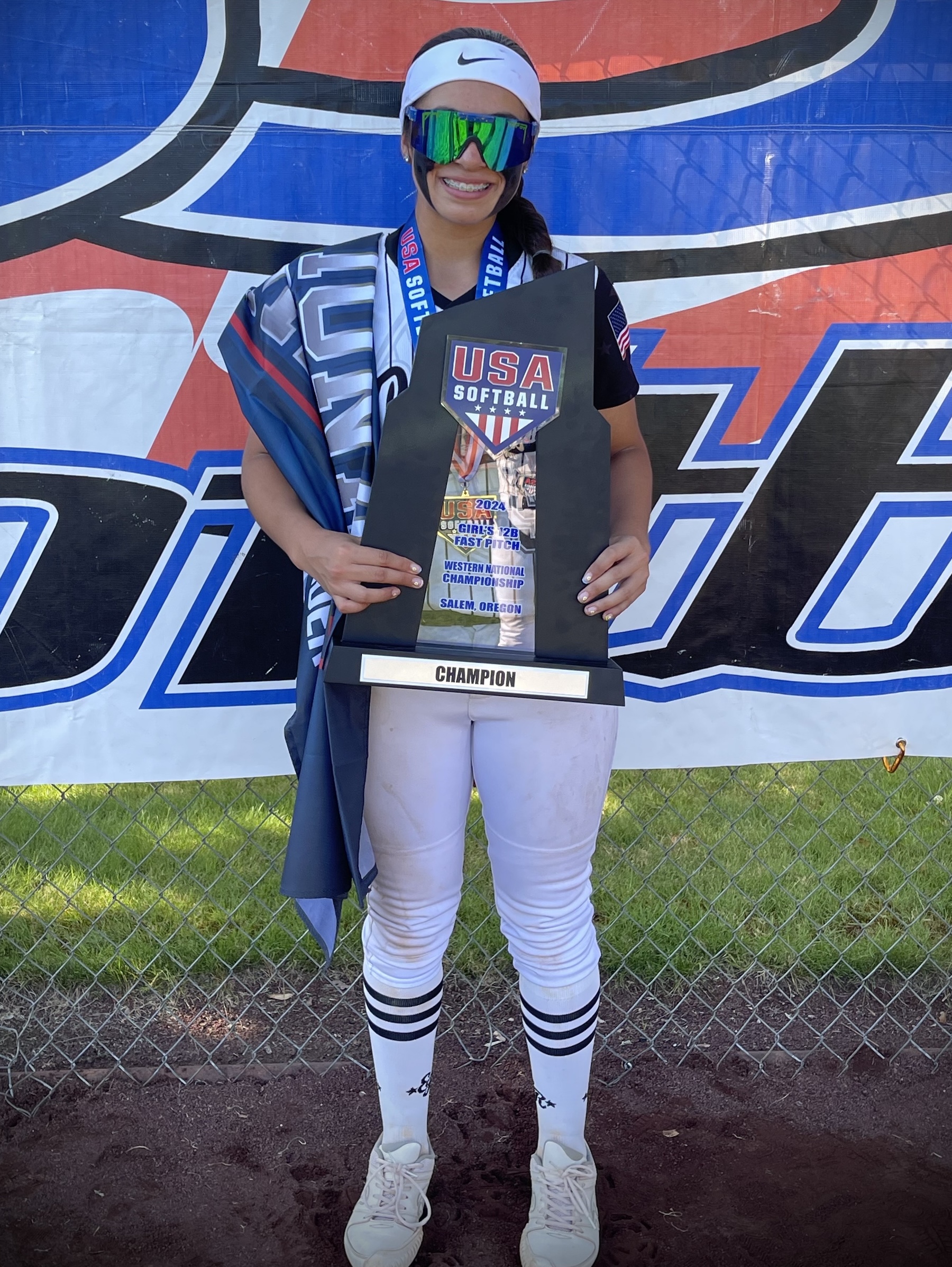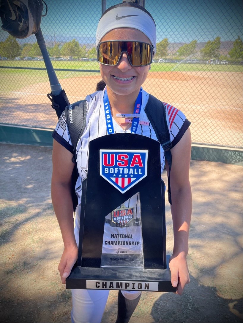 My proudest accomplishment is to be able to win three national championships with El Rio Fastpitch. I have been playing for El Rio Fastpitch since 6U.